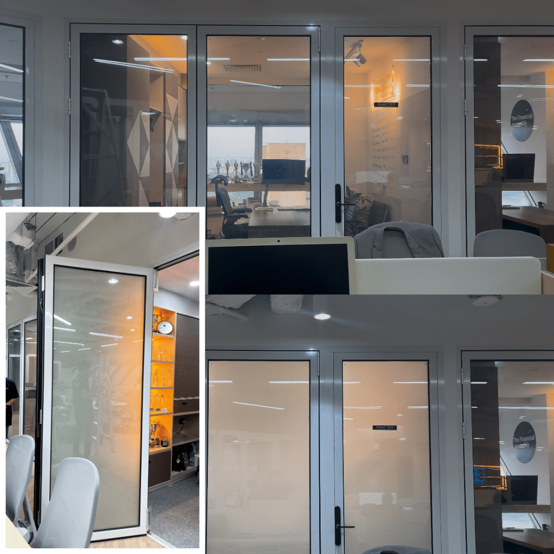 Our Smart Glass Film offers color customization and logo printing for branded commercial spaces.